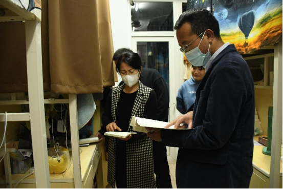 为深入了解22级新生学习和生活状况,10月24日晚7点,我院党委书记董佰壹、副书记马鑫、22级班主任蒋志远一同走进学生宿舍看望在校学生。