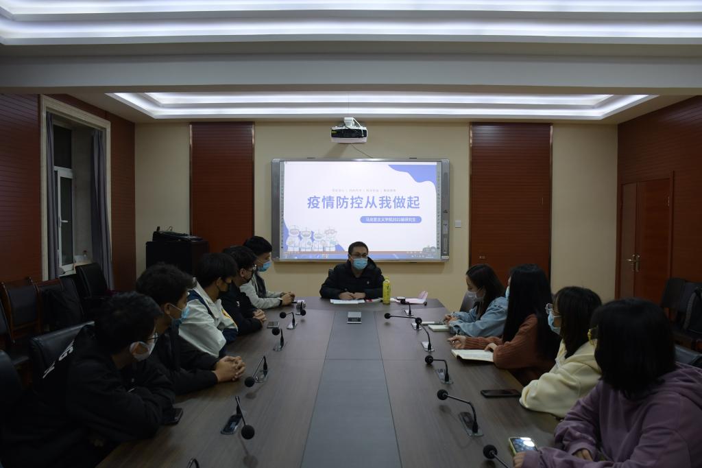 研究生辅导员周献术、赵志浩、蒋志远在主题班会上传达了学校疫情防控精神,并向同学们提出以下几点要求:一是要严格遵守学校公共场合疫情防控规定,进入校内公共场所务必科学佩戴口罩,做好防护,按要求扫场所码。二是在校学生务必执行常态化晨午检制度、必须按时参加核酸检验;各年级必须严格执行学校关于班级和宿舍包联制、网格化管理模式有关规定。三是明确责任,责任到人,层层追责。包联责任人和网格责任人务必尽职尽责,从细节着手,增强责任心。四是要严格执行请销假制度,非必要不外出,不与学校外来不明人员接触。五是要认真落实秋季安全教育学习,按规定时间完成学习和考试。