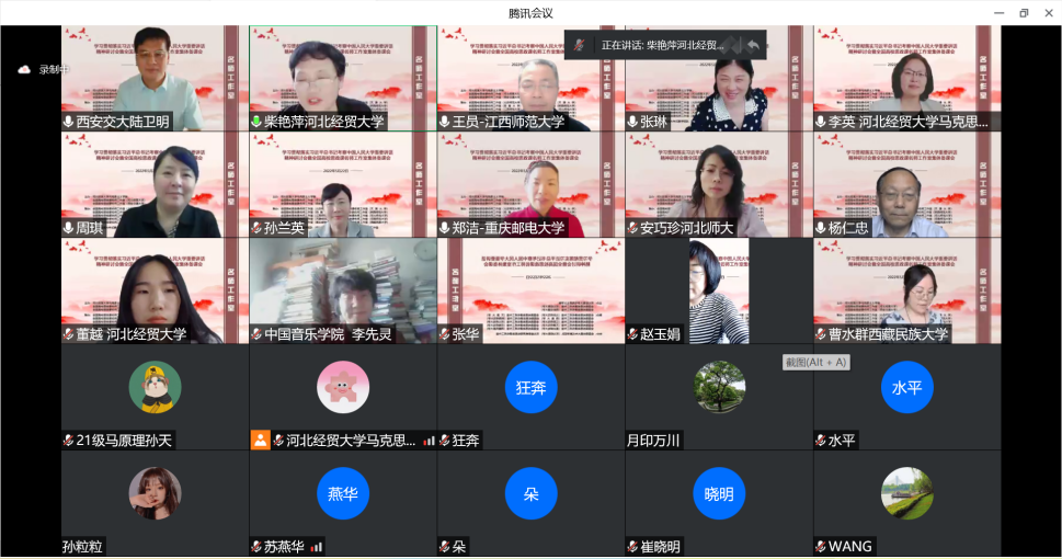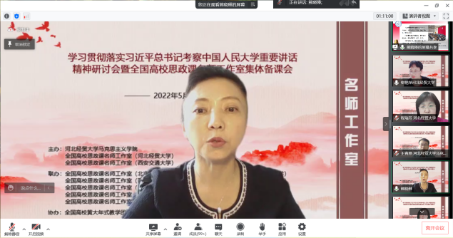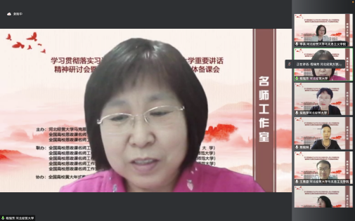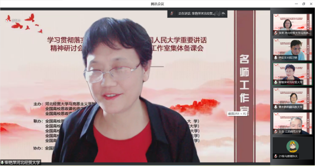 柴艳萍教授、北京师范大学熊晓琳教授、天津师范大学杨仁忠教授、河南师范大学马福运教授、重庆邮电大学郑洁教授、西藏民族大学曹水群教授分别围绕“习近平总书记对思政课教师的‘五大’要求”“讲深讲透讲活思政课的几点思考”“在坚持知识体系自主中构建中国特色哲学社会科学”“高校重视思政课建设的实践进路”“在办好讲好学好中推进思政课改革创新”“做得好不好,关键在教”作了主题发言。