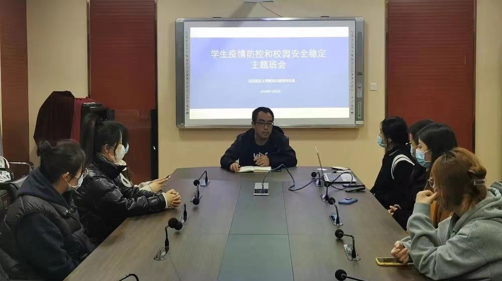 疫情防控主题班会上,研究生辅导员周献术、赵志浩、蒋志远分别传达了学校疫情防控精神,向同学们提出以下几点要求:一是树立正确的疫情防范意识,严格要求自己,以身作则。二是积极配合核酸检测,进出公共场所佩戴口罩、扫场所码,按要求落实好学校的各项防控措施。三是非必要不外出,如需外出严格按照学校请销假制度执行,实行定点往返制度,降低自己感染疫情的风险。四是各个网格员要准确上报信息,不遗漏,不瞒报,履行好自己的职责。五是领取外卖需在学校指定地点,避免与外来人员接触,保护好自己。六是警惕校园电信诈骗和校园贷等违法行为,保护好个人的财产和人身安全。