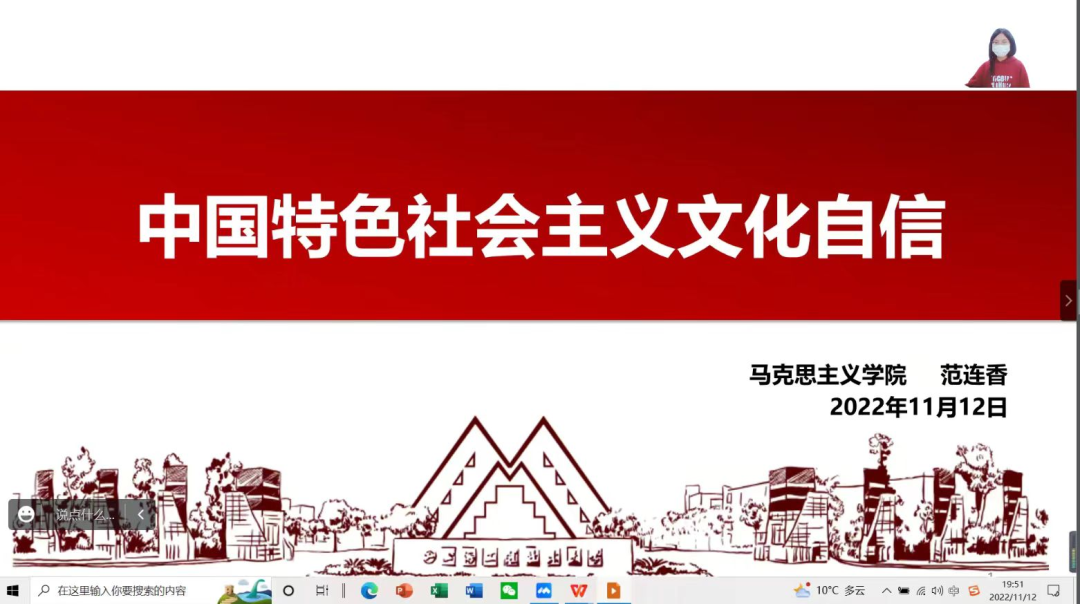 11月12日晚,我院研究生会“悦读二十大,奋进新征程”学习贯彻二十大精神系列活动第二期在二办203举行。系列活动第二期以“推进文化自信自强,铸就社会主义文化新辉煌”为主题,共有四位主讲人参与主讲,第四讲主讲人为2022级马克思主义理论专业研究生范连香。本次活动采用线上线下相结合的方式,全院90余名研究生参加了此次活动。