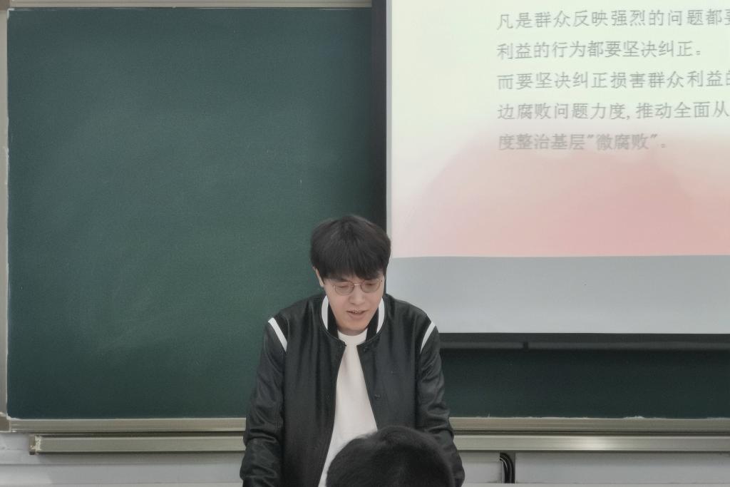 3月3日晚,我院研究生会“践行二十大,学“习”讲故事”学习贯彻二十大精神系列活动第一期在北三教C106举行。系列活动第一期以“廉政”为主题,共有四位主讲人参与主讲,第三讲主讲人为2021级马克思主义理论专业研究生孙天,全院58名研究生参加了此次活动。