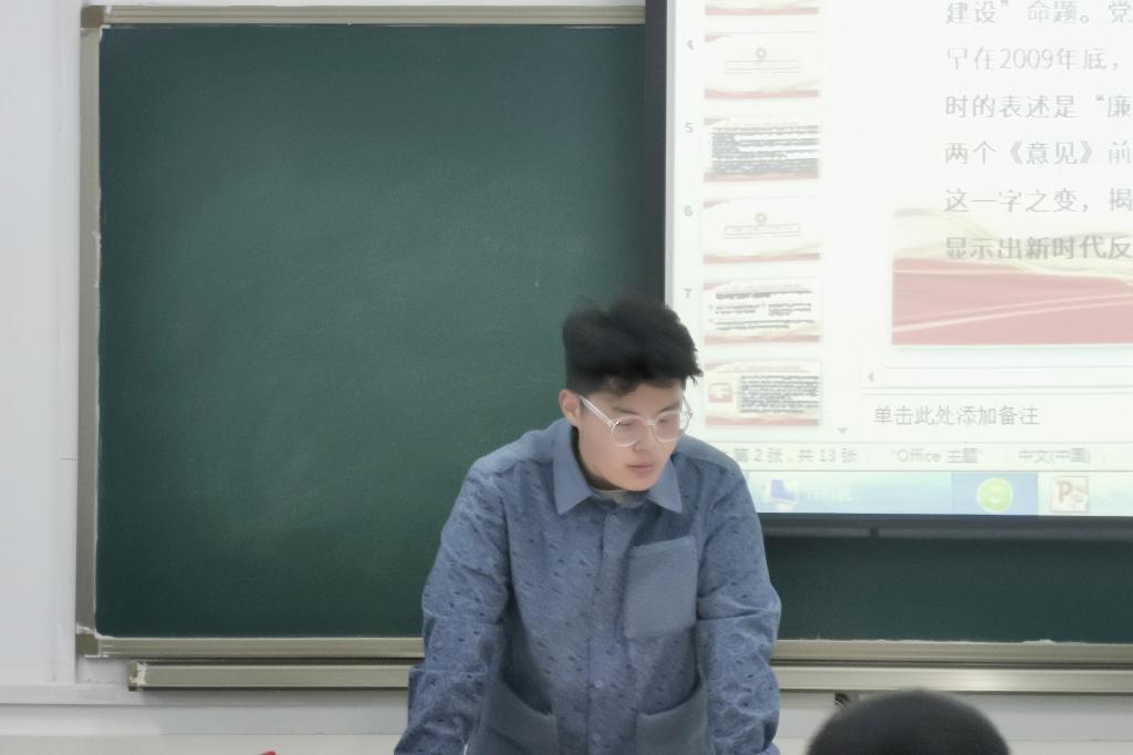 3月3日晚,我院研究生会“践行二十大,学“习”讲故事”学习贯彻二十大精神系列活动第一期在北三教C106举行。系列活动第一期以“廉政”为主题,共有四位主讲人参与主讲,第四讲主讲人为2021级伦理学专业研究生王汉卿同学,全院58名研究生参加了此次活动。