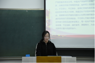 姜亚新同学主讲的题目为《新时代践行初心使命》。她从“不忘初心”的重要性、“坚守初心”的故事和“保持初心”的方法三个方面展开对初心的诠释。首先,姜亚新同学选取了习近平总书记在二十大中关于初心的讲话来解释百年党史其实就是我们党矢志践行初心使命的历史,说明初心的重要性。然后,她又讲解了黄大年、陈望道和“半条被子”--三位女红军战士坚守初心的故事进一步说明坚守初心的必要性。最后,她指出要从深刻把握不忘初心的深层逻辑、增强坚守初心使命的政治自觉和建立不忘初心的服务群众制度三个方面来达到一直“保持初心”的目的。