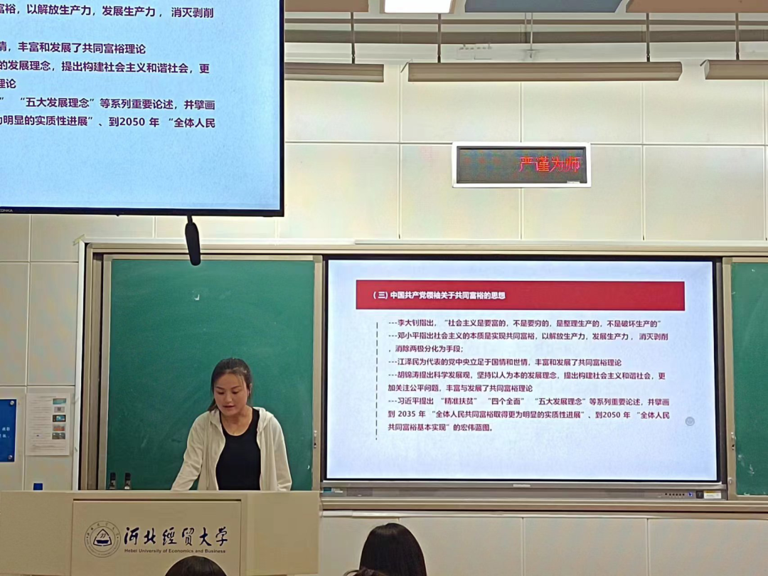 常静同学主讲的题目为《中国共产党探索共同富裕的历史逻辑与基本经验》。她指出,治国之道,必先富民。习近平总书记在党的二十大报告中指出,“扎实推进共同富裕”。这对于凝聚全体人民的智慧和力量,为全面建设社会主义现代化国家、全面推进中华民族伟大复兴而团结奋斗具有重大意义。实现共同富裕,是人民群众的共同期盼,也是我们党百年来矢志不渝的奋斗目标。坚持党的领导,是坚持中国特色社会主义不变色、不变质的根本保证。促进共同富裕只有坚持党的全面领导,才能保证中国特色社会主义的性质和方向。