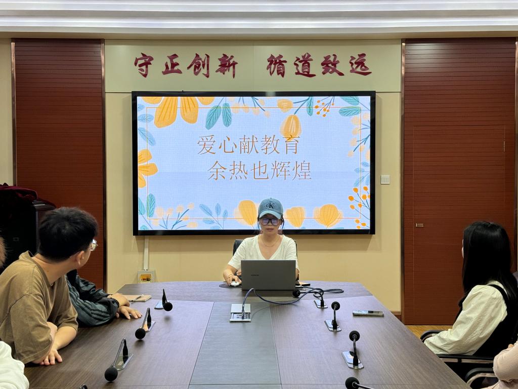 屈丽婷以“爱心献教育 ,余热也辉煌”为题目,讲述了刘素琴风险教育,无私助学,坚定信念的故事。她在工作期间积累丰厚教学经验和超前的教学方法、管理系统知识,退休后,还继续在教育事业上发挥余热。她勤俭持家、邻里互助、无私奉献、不图回报,资助困难儿童,帮扶建立幼儿园,受到社区居民的一致称赞。从2016年开始帮助怀来县麻峪口村白血病孤儿童娜,到处募捐,每年筹集捐款达3万元左右,让孩子感受到了来自全社会的温暖。通过听刘素琴的故事增加我们的爱国意识,同时要传承“五老”精神,树立正确的世界观、人生观和价值观。