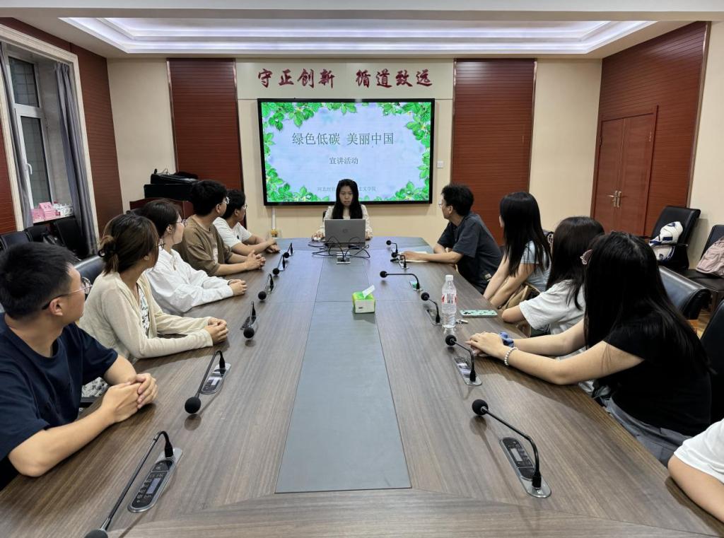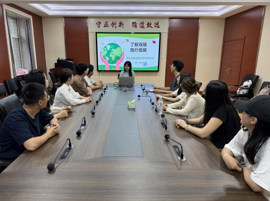 为全面贯彻党的二十大精神,深入学习习近平生态文明思想,广泛开展节能降碳宣传教育,推动形成绿色低碳的生产方式和生活方式。5月17日,我院研究生会在二办203举办“绿色低碳,美丽中国”宣讲活动,刘丹彤、夏兵杰、黄晓琳、李路涛主讲,三十余名研究生参会聆听。