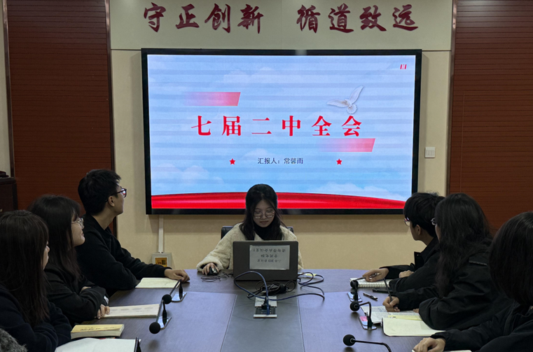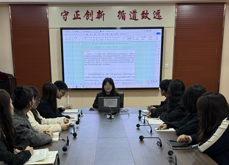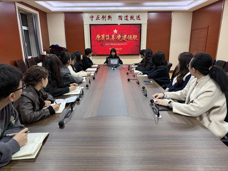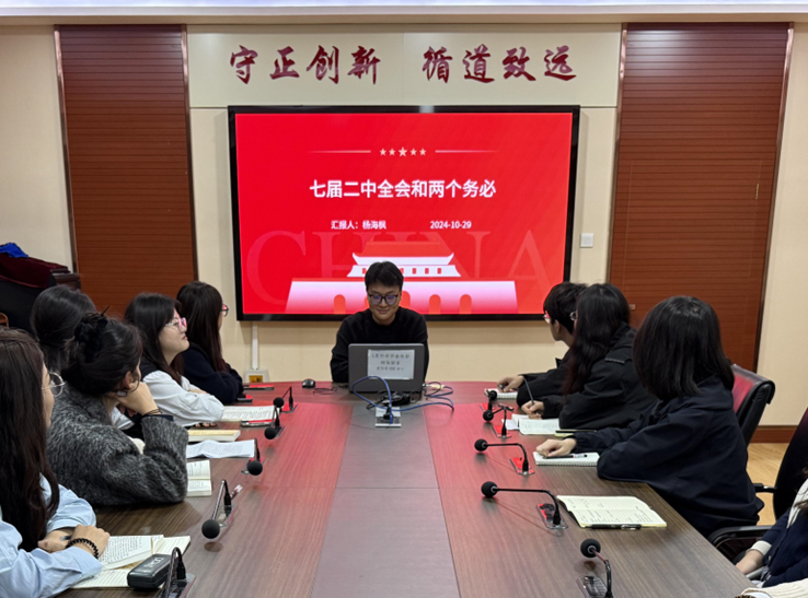2023级党的建设专业研究生在二办203举办“原著筑基,党建领航”马克思主义中国化党建经典文献品读沙龙第三期活动。本次活动由张振杰副院长指导,薛佳垚、常馨雨、杨海枫主讲,2023级、2024级党的建设专业研究生参加。