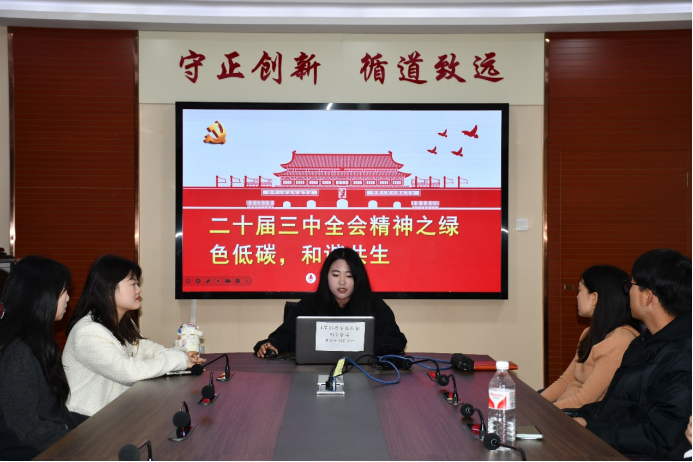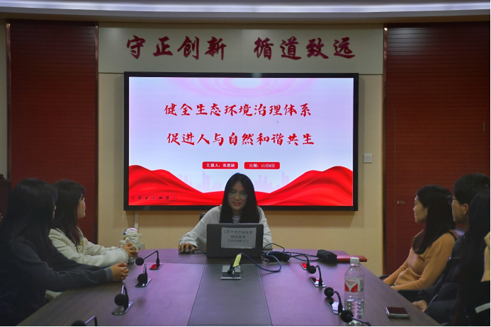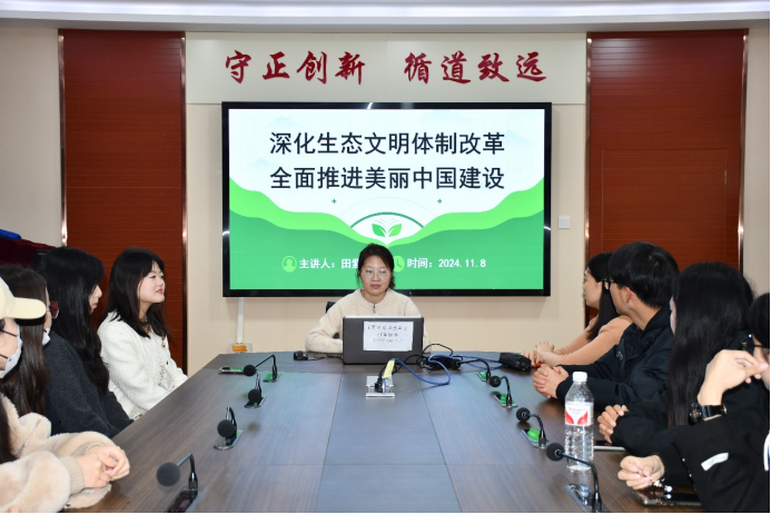 为深入学习贯彻落实党的二十届三中全会精神,11月8日,我院研究生会在二办203举办了第2期“七十五年辉煌映初心,三中全会精神启新程”学术沙龙系列活动。本期活动主题为“敬畏之心筑绿梦,和谐共生谱新篇”,本期活动由田紫晗、梁文察、张楚涵、杨纪初主讲,四十余名研究生参会。