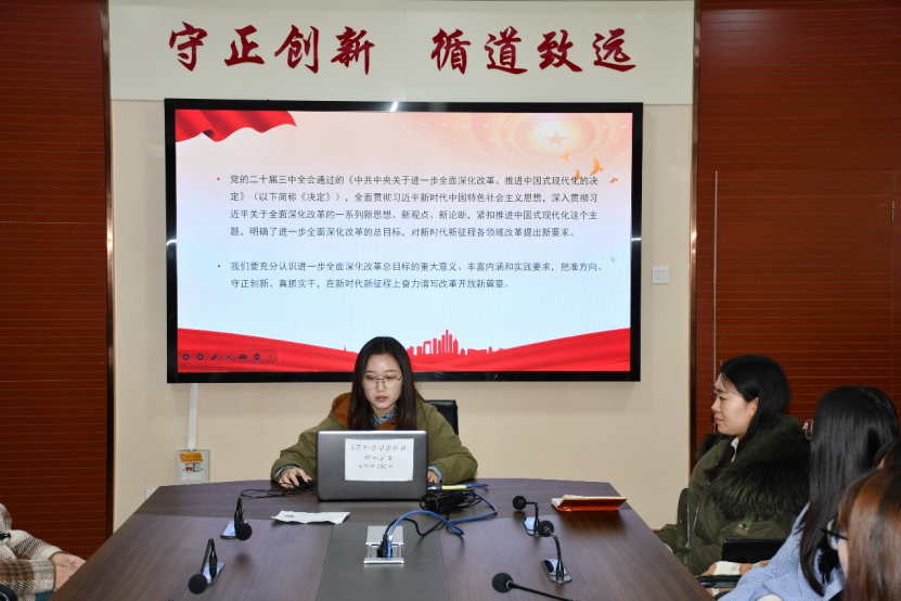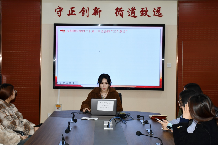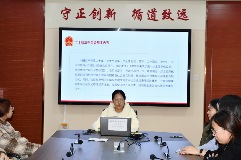 为深入学习贯彻落实党的二十届三中全会精神,11月15日,我院研究生会在二办203举办了第3期“七十五年辉煌映初心,三中全会精神启新程”学术沙龙系列活动。本期活动主题为“三中全会精神领航向,新时代发展展宏图”,由张雯璇、杨延如、尤天赐、李佩雯主讲,四十余名研究生参会聆听。