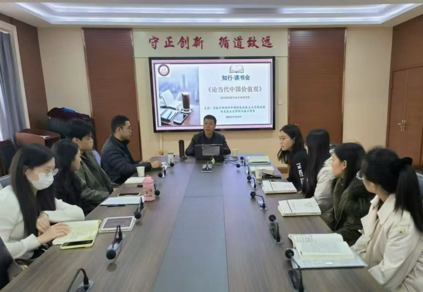 书香致远,阅读领航。11月18日下午,我院在二办203举办研究生“知行”读书系列分享会(第二期),活动由习近平新时代中国特色社会主义思想社团和第一党支部马鑫工作室联合主办。本期读书会的阅读篇目为《论当代中国价值观》,邀请硕士研究生导师宁克强副教授作为指导和评议老师,2024级思想政治教育方向全体研究生参会读书会。