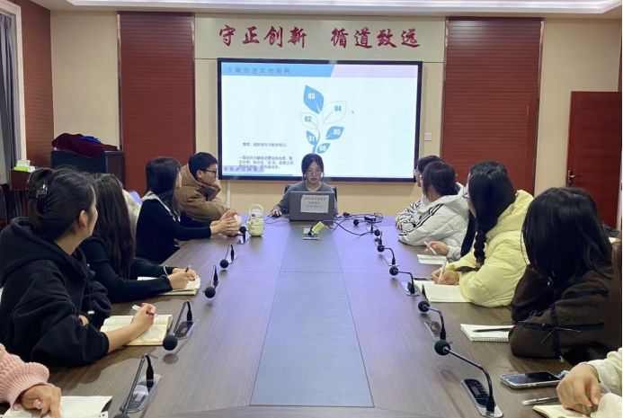 常馨雨阐述了马克思主义中国化党建经典文献综述的内涵、写作核心和写作原则;杨海枫围绕马克思主义中国化党建经典文献综述的写作步骤、常见问题、搜集途径进行讲解;薛佳垚分析了《改革开放以来中国共产党纪律建设问题研究综述》一文。