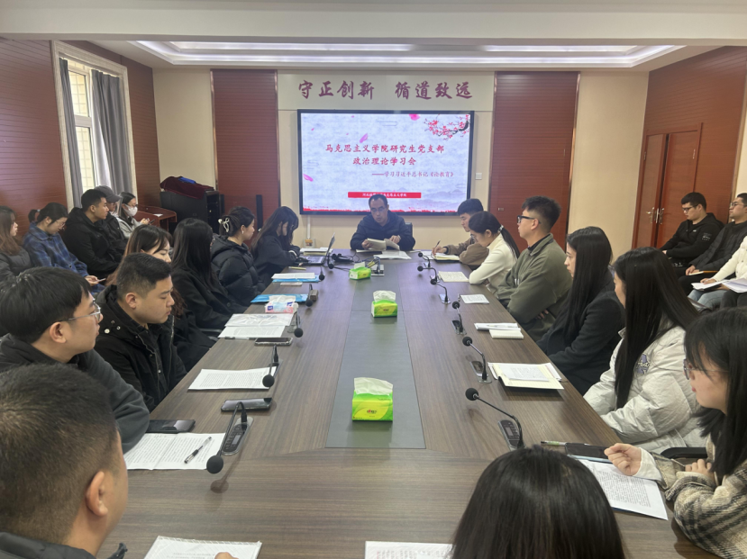 203会议室举办了习近平总书记《论教育》专题政治理论学习研讨会。本次研讨会由支部书记周献术主持,全体研究生党员参会。