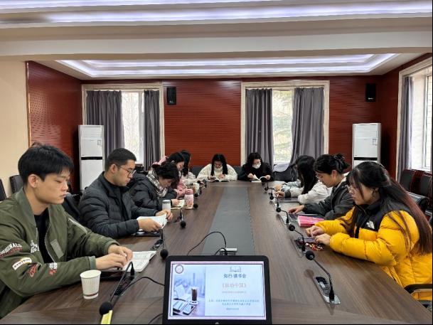 在二办203举办研究生“知行”读书系列分享会(第三期),会议由习近平新时代中国特色社会主义思想社团、第一党支部马鑫工作室主办。本次读书会的阅读篇目为《脉动中国》,2024级思想政治教育方向全体研究生参加了读书会。
