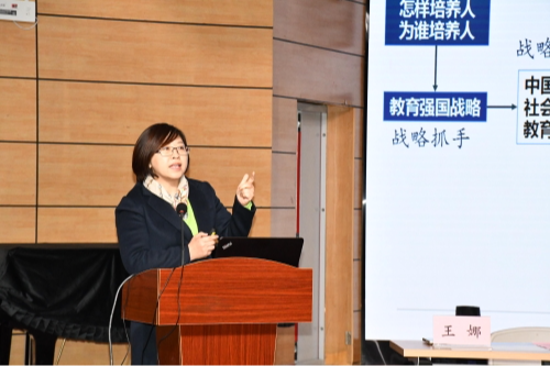 副院长王娜教授以《“教育、科技、人才一体化推进”的理论逻辑及其对高校思政课的新要求》为题,精准阐述了“教育、科技、人才一体化推进的文本表述”、“教育、科技、人才一体化推进的理论逻辑”以及“对高校思政课教学的挑战和新要求”。