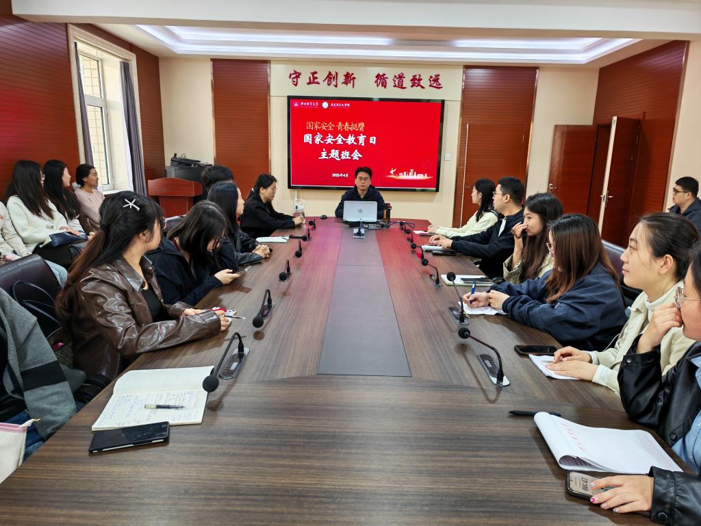 蒋志远、黄少雄、路艳丽等辅导员老师带领同学们集中学习了习近平总书记关于总体国家安全观的重要论述,认真研读了《国家安全法》《反间谍法》等法律法规,充分认识到加强国家安全对于保持国家发展稳定、实现社会长治久安的重大意义。在互动环节,同学们积极发言,表示要充分树立国家安全意识,增强国家安全观念,以实际行动积极融入筑牢国家安全防线屏障的生动实践中,为构建新安全格局、推进国家安全体系和能力现代化贡献力量。