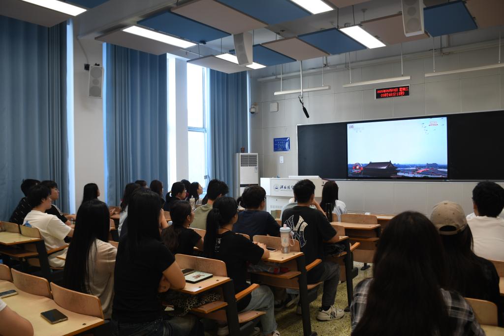 观看过程中,师生们怀着敬畏之心静坐观礼,在威武的军容中重温近代以来中华民族从站起来、富起来到强起来的伟大征程,在场师生无不心潮澎湃,热血沸腾,现场气氛热烈而庄重。