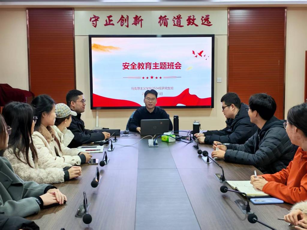 为强化研究生安全意识和责任担当,切实筑牢校园安全防线,11月5日我院通过线上线下相结合的方式,召开11月份研究生安全教育主题班会,班主任黄少雄老师主持班会,党委副书记刘志峰、辅导员周献术等老师和研究生参加班会。