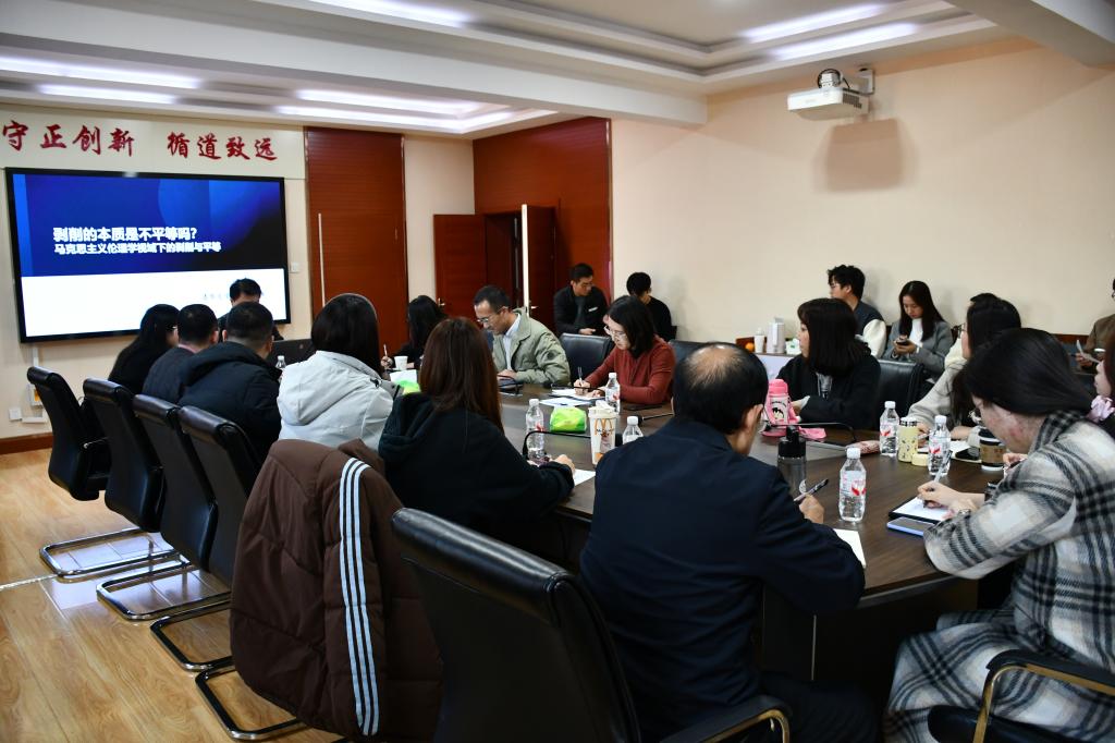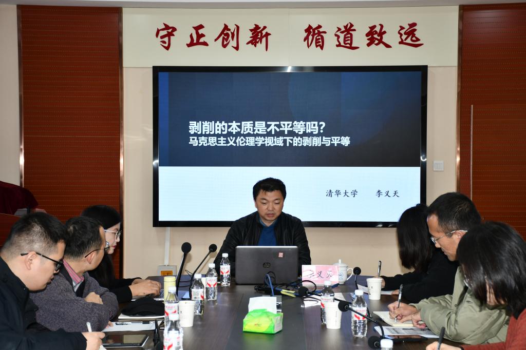 李义天教授作题为“剥削的本质是不平等吗?”的专题讲座。本次讲座由副院长马鑫主持,部分青年教师及研究生参加。