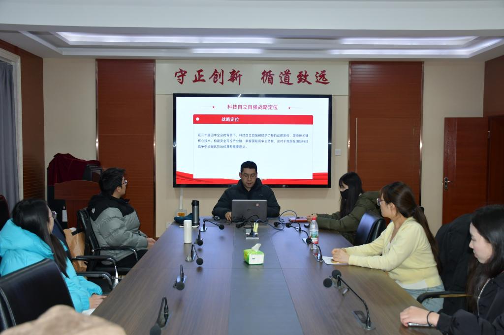 徐国涛同学围绕科技赋能新质生产力的必然性,结合全会精神,阐述了完整的科技赋能路线;王蒙召同学追溯生产力理论演进,聚焦新型举国体制,阐述了科技自立自强对中国式现代化的支撑作用;张禧同学解析了科技自立自强与新质生产力之间的双向赋能关系,提出了核心技术攻关、协同机制构建等关键举措;郁晓薇同学围绕科技自立与新质生产力的双轮驱动逻辑,强调了青年的使命担当。