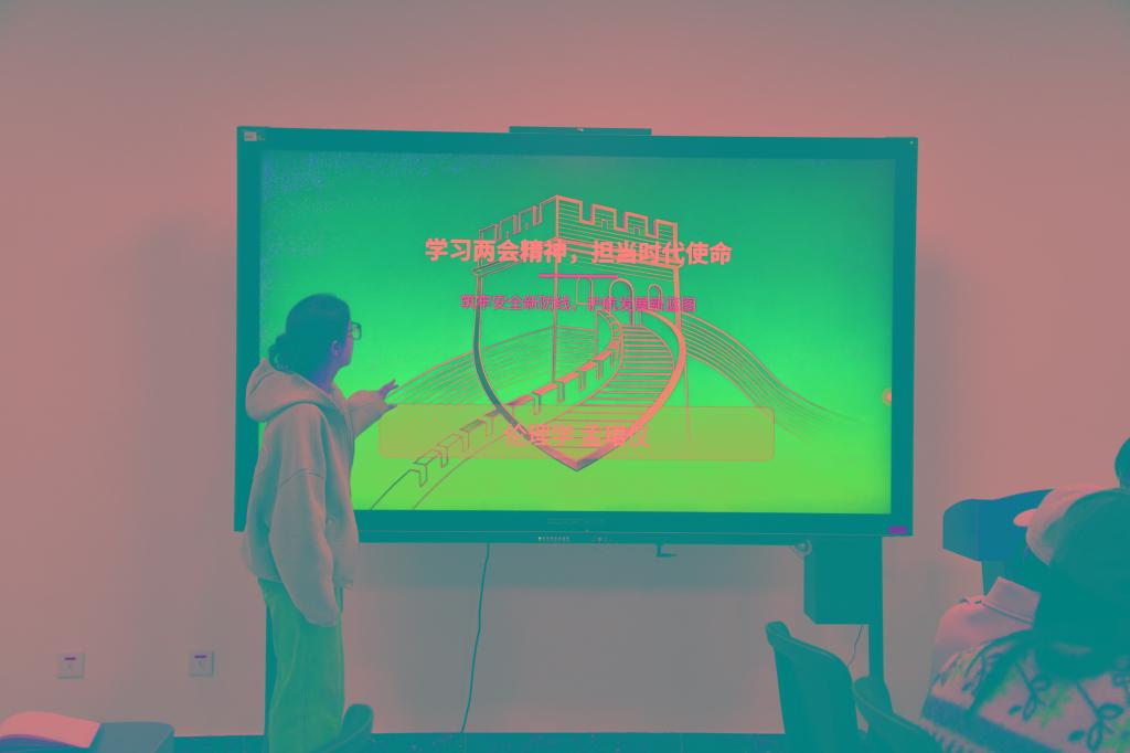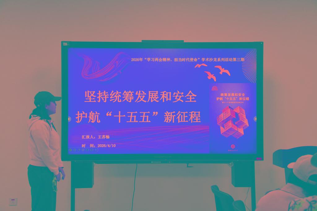 孟珺仪同学围绕全国两会精神与总体国家安全观,解读新时代青年在维护国家安全中的使命担当与实践路径;王苏畅同学结合两会关于统筹发展和安全的部署要求,阐明其对“十五五”时期高质量发展的战略支撑作用;平静同学立足两会对青年发展的相关论述,分析统筹发展和安全背景下青年的时代机遇;赵晗同学结合两会精神,号召同学们将个人理想融入国家发展大局,以安全之基护航发展之路,以青春之我建设青春之国家。