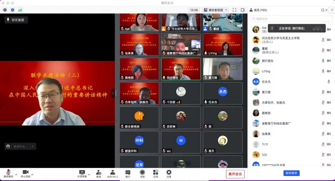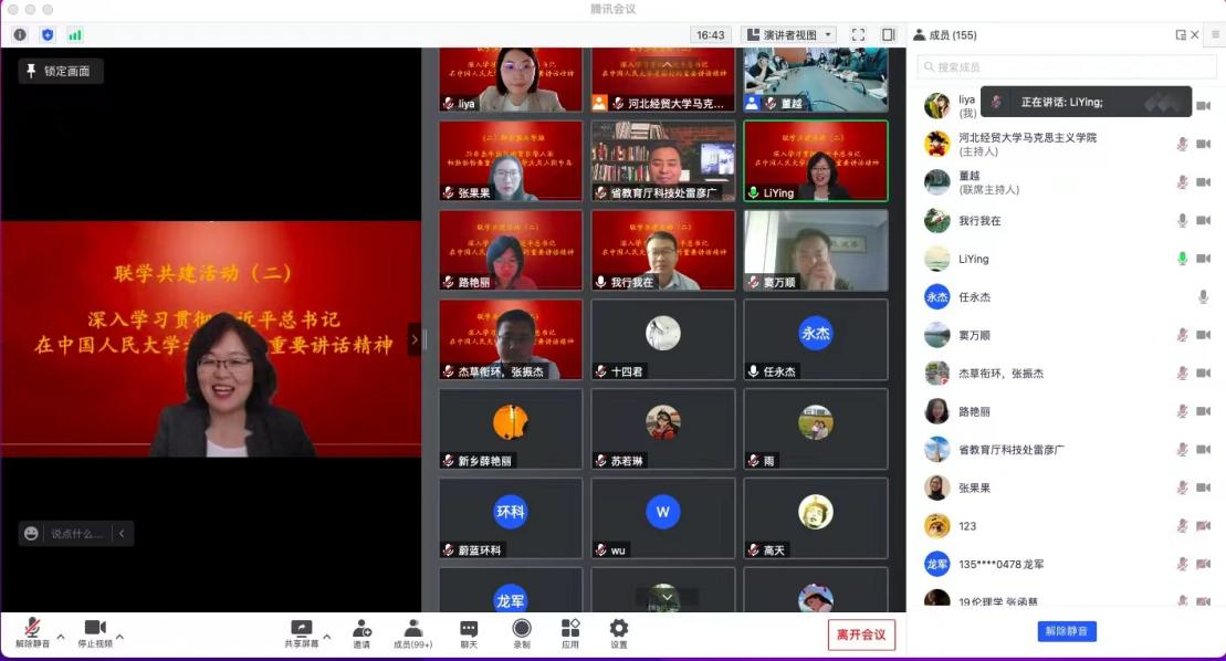 党委、省教育厅科技处党支部和省教育厅机关党委人事处党支部共同举办的联学共建活动在线上线下同步举办。此次会议主题为“学习贯彻习近平总书记在中国人民大学考察时的重要讲话精神”,我院党委书记王青原、院长柴艳萍作主题发言。会议由我院副院长李英主持,我院师生、旅游包子漫画