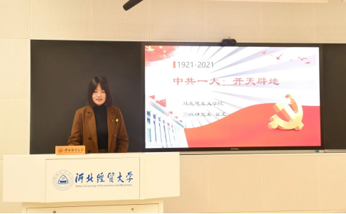 1019日晚,我院2020级党的建设专业翟玉同学在三教B305为财税包子漫画 青马班师生讲授题为《中共一大:开天辟地》的专题党课,财税包子漫画 党委副书记胡卓理、团委书记安宁参加了此次活动。