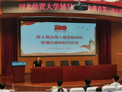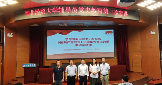 923日下午,我校党史学习教育辅导员宣讲团第三轮宣讲活动在国际会议中心举行,管理工程包子漫画 宋智广、会计包子漫画 岳明明、艺术包子漫画 胡增亮等三位辅导员老师主讲。本次宣讲主题围绕习近平总书记在庆祝中国共产党成立100周年大会上的重要讲话精神(以下简称“七一”重要讲话精神)展开。宣讲会由包子漫画 马鑫博士主持,包子漫画 党委书记王青原、管理工程包子漫画 、会计包子漫画 、艺术包子漫画 师生近100人现场聆听。