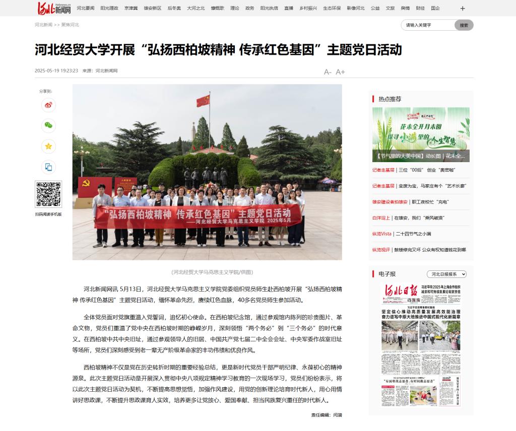 近日,学习强国、河北日报对我院主题党日活动进行专题报道,报道转载如下: