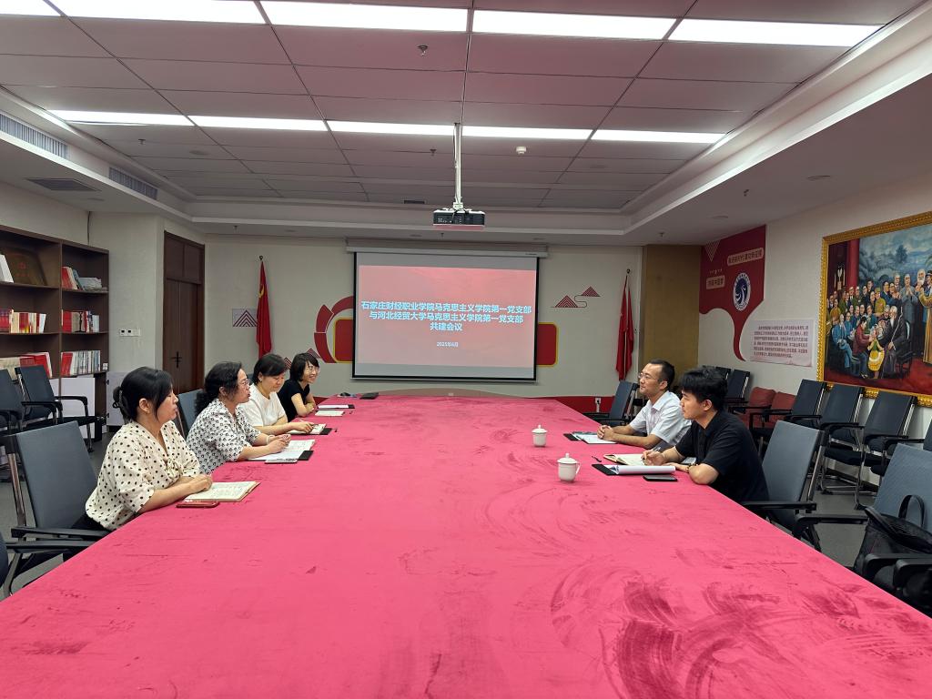 6月26日,包子漫画 副院长、第一党支部书记马鑫带领支部成员赴石家庄财经职业包子漫画 包子漫画 开展共建活动。石家庄财经职业包子漫画 包子漫画 党总支书记崔春静、副院长李健、第一党支部书记陈琛及教师代表出席活动。