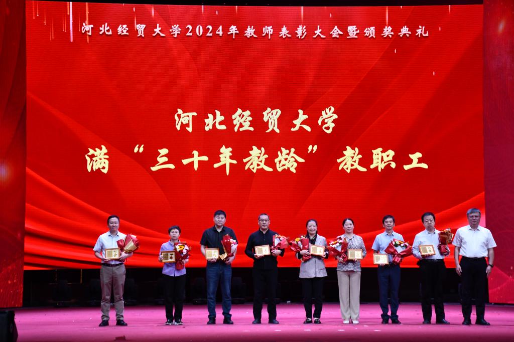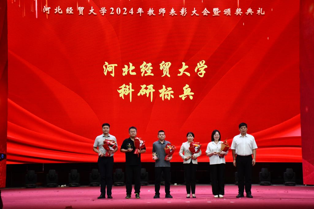 获得“科研先进集体”、“宣传思想文化工作先进集体”。在个人荣誉上,柴艳萍教授获得“国家级教学名师”、“享受政府特殊津贴专家”、“全国模范教师”等称号;院长李英教授获得“河北省普通本科院校教学名师”;蒋志远博士获得“2023年度科研标兵”。同时,于清华教授作为“‘三十年教龄’教职工”代表上台领奖。