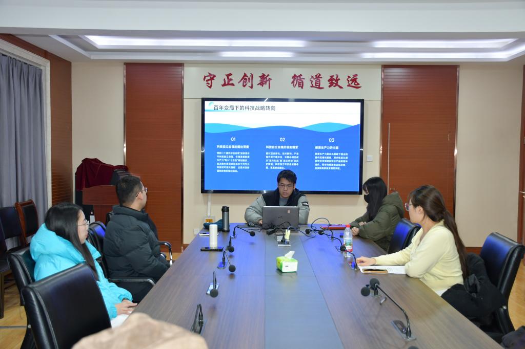 徐国涛同学围绕科技赋能新质生产力的必然性,结合全会精神,阐述了完整的科技赋能路线;王蒙召同学追溯生产力理论演进,聚焦新型举国体制,阐述了科技自立自强对中国式现代化的支撑作用;张禧同学解析了科技自立自强与新质生产力之间的双向赋能关系,提出了核心技术攻关、协同机制构建等关键举措;郁晓薇同学围绕科技自立与新质生产力的双轮驱动逻辑,强调了青年的使命担当。